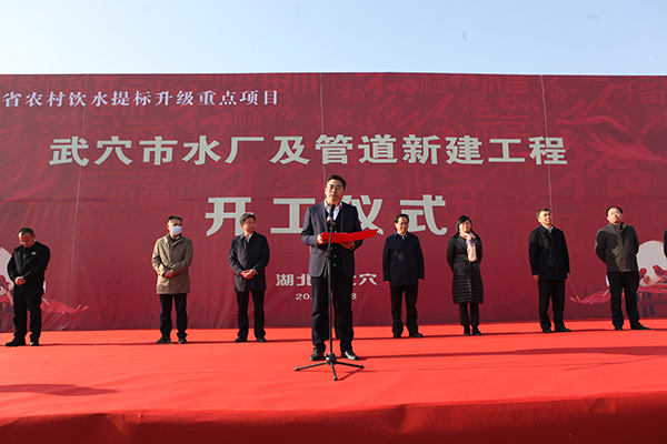 2021年12月17日,武穴市水厂及管道新建工程开工仪式在武穴市石佛寺镇电子信息产业园举行,武穴市委书记胡昊、副书记、市长查俊、市委副书记王光华,省水利厅、黄冈市水利局、及相关参建单位代表出席开工仪式。公司总经理胡刚作为施工方代表出席开工仪式。
