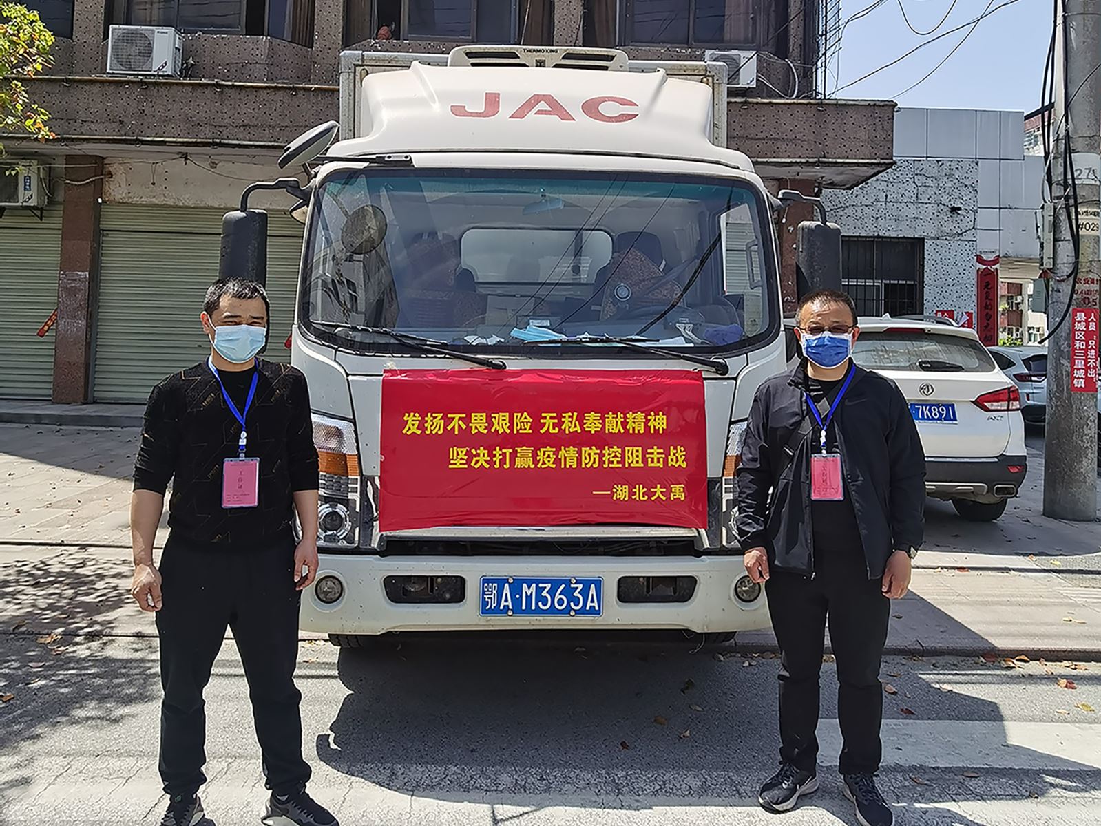 3月29日,大悟发现1例外省返悟人员核酸检测呈阳性。为保障全县人民群众身体健康和生命安全,经大悟县疫情防控指挥部研究,对大悟县城区和三里镇人员进行分区分级管控。大悟疫情引起公司的高度关注,期间公司积极与大悟县水利和湖泊局联系,了解到目前大悟市民对农产品需求较大。疫情管控下,市场上的生鲜蔬菜出现不同程度的价格波动,听此消息后公司立即向武汉蔬菜供应商紧急调集了151箱新鲜的蔬菜,经过严格消杀、打包装箱后,4月8日,满满一货车的物资从武汉出发抵达大悟,助力大悟抗击疫情。
