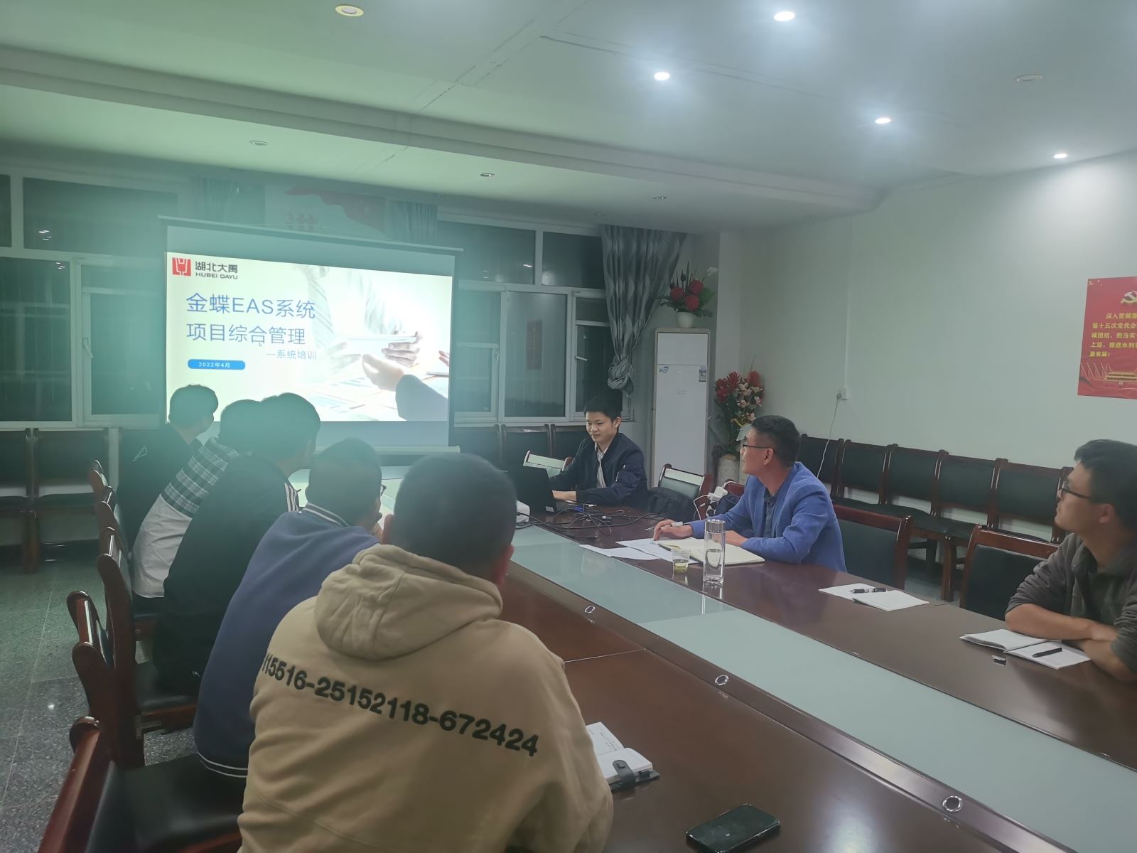 4月4日到4月25日期间,成本管理部分批组织人员赴通城县云溪水库除险加固工程项目部、嘉鱼县余码头泵站更新改造工程项目部、武穴市水厂及管道新建工程项目部及应城市水系连通及农村安全水系综合整治项目部,对项目部现场管理人员及工务人员进行金蝶EAS系统项目综合管理培训与交流。
