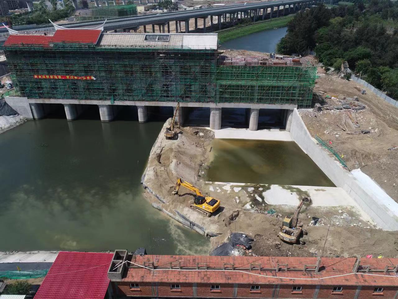 石狮市水头排涝枢纽工程是福建省级重点项目,石狮市民生工程,工程规模为大(2)型,建成后将对石狮市中心城区起到防洪、排涝、纳潮、挡潮等作用,将保护石狮市165.09km² 面积、72万人口不受内涝之灾及洪(潮)水侵袭。目前,本项目已完成水闸及泵站主体施工内容,计划在5月底完成泵站上部管理房,6月底完成水闸上部管理房及水闸闸墩以下所有施工内容。现阶段正进行管理房装修、金属结构安装及机电设备安装工作,工程进入倒计时阶段。