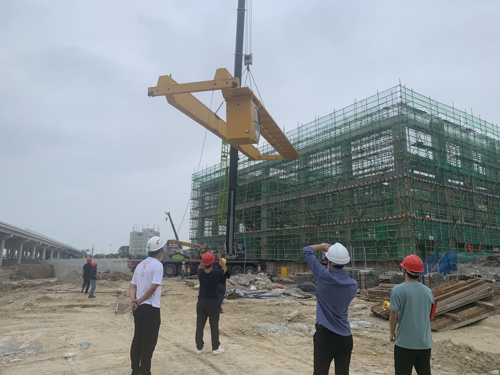 石狮水头排涝枢纽工程泵房桥机跨度20米,总重16吨,最重单件7吨,最大起吊重量20吨。为了响应工程加快工期进度的施工总体方针,机电安装班组一改以往桥机梁单件吊装的施工方案,采取桥机拼装完成后进行整体吊装的方案,顺利完成了吊装并加快了石狮水头排涝枢纽工程的整体施工进度,该项施工方案获得了业主、监理单位的一致认可及好评。