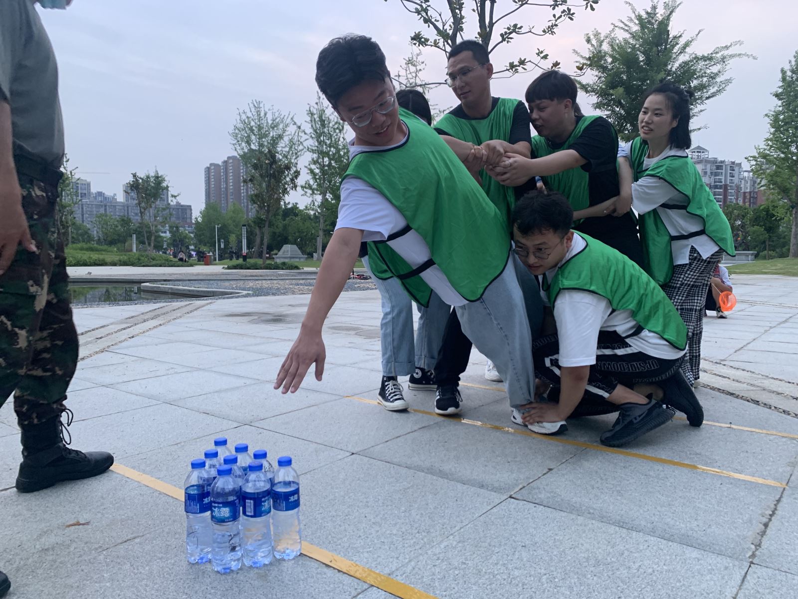 下午1点,新员工踏上参观工程的旅途,在大巴车上,大家自我介绍、相互认识,经过一番轻松活泼的“破冰行动”,大家很快地打破了初来的陌生。在晚饭后,新员工们随机分成2个小组,争先恐后地参与小组任务,为自己的小组取响亮的队名、绘制队旗与队标、写上气势磅礴的口号,大禹人同心协力的团队精神跃然纸上。古人云:“千人同心,则得千人之力;万人异心,则无一人之用”正是有同伴们的团结统一、精诚合作,从陌生到熟悉,进而成为亲密无间的队友,共同分享奉献、协作、信任带来的喜悦,才使得大家顺利地逐个破解《解手链》、《生命之水》、《激情节拍》等活动,虽然这个过程充满艰辛与汗水,但也不乏欢声笑语。