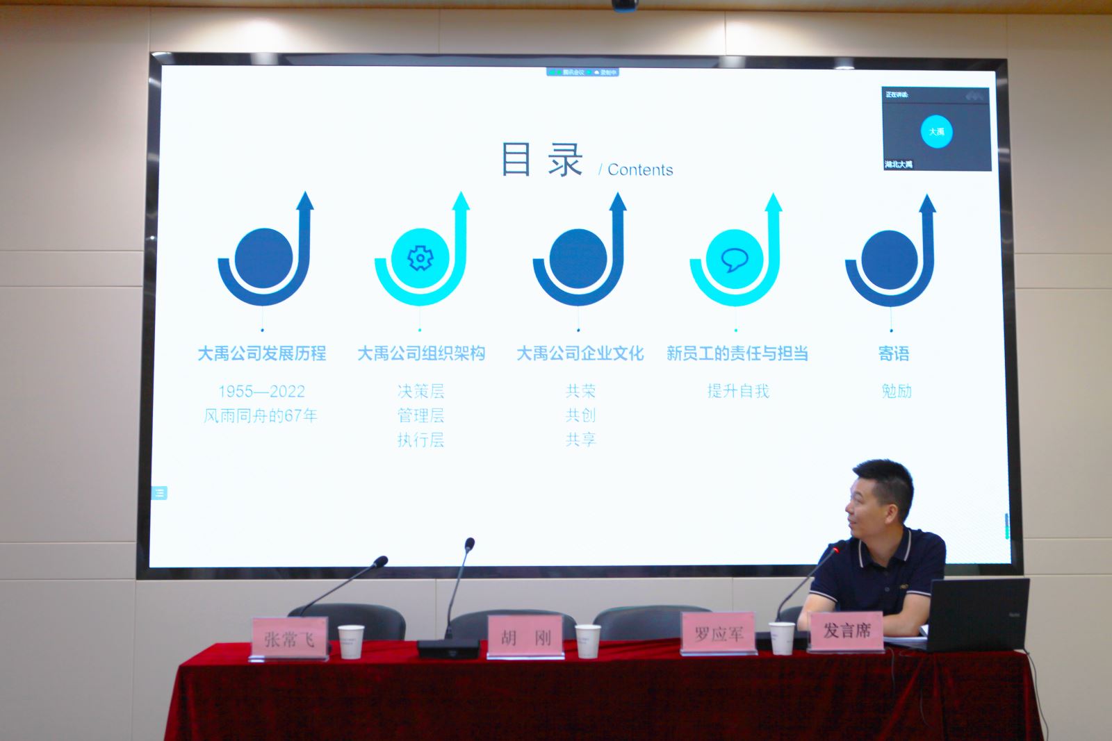 罗应军亲自讲授,培训内容涵盖了公司发展历程、组织架构、华体(中国)介绍,不仅有对大禹公司发展史的娓娓道来、对公司产业结构的如数家珍,亦有对大禹华体(中国)的精准解读,更有赠与新大禹人的诗词:“盛年不重来,一日难再晨。及时当勉励,岁月不待人。”勉励青年员工努力储备知识、提升全面素质、有准备有韧劲地迎接并把握未来发展机遇。