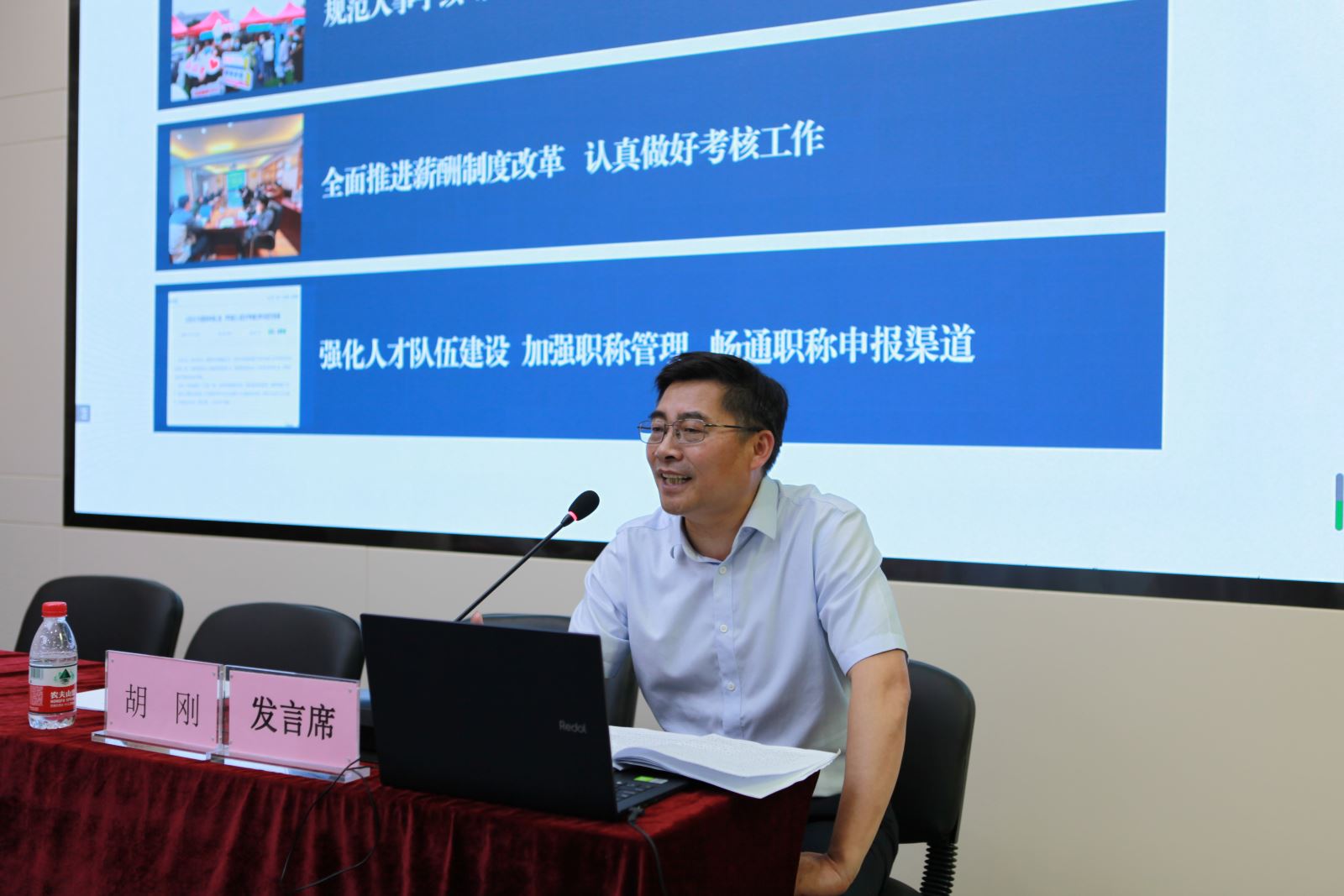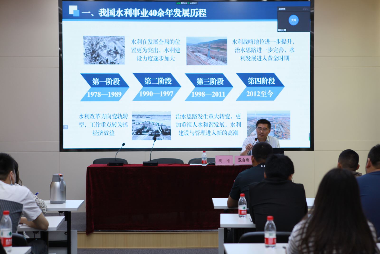 胡刚向大家讲述了我国水利事业40余年的发展历程,结合水利发展规划及公司2021年度目标完成情况全面剖析了公司三年发展规划。他表示,40余年来,水利施工从起初的肩挑背扛到今天的自动化、机械化施工,筑起一座座水利丰碑,是几代人的辛勤汗水与辛劳智慧的结晶,公司在水利事业发展浪潮中砥砺前行,紧跟省“十四五”规划号召,以“百年企业、百亿产值”的“双百”发展为目标,跻身行业前列,坚持以水利传统行业为基础,多元化经营,做强水利主业,拓宽市政、科技板块,以投资带动企业规模,全力开创了企业改革发展新局面,实现了公司全方位、高质量发展。他指出,在未来5年乃至更长的时间里,水利建设事业大有可为,新大禹人要肩负起时代赋予的重任,牢牢把握住公司赋予的职责与使命,在工作实践中磨炼意志,锤炼本领,放飞青春梦想。