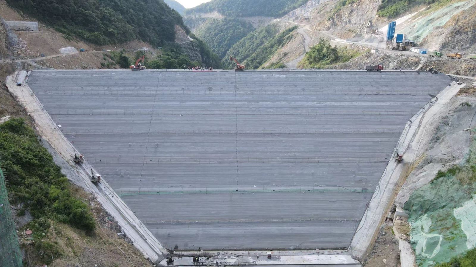 大坝填筑至坝顶高程,是继去年10月实现河道截流和今年实现坝体填筑达到度汛目标的又一控制性核心节点。基础及趾板开挖于2021年11月底全部完成,趾板锚杆已全部完成,趾板混凝土已浇筑284m(占设计量的97%),剩余右岸与溢洪道衔接异形趾板。大坝于去年11月开始填筑,月最大填筑约10万方,日最大强度5400方,最大填筑断面位于1200m高程,约1.1万平米。经历6.5个月时间,于7月12日完成大坝填筑封顶。施工中,项目部强化现场管理,严格执行交底制度,抓实抓细人员分工,规范机具调度运行,强化噪声扬尘治理,在做到文明施工的同时,高质量、高标准地推进工程建设。在工程建设坝体填筑的关键时期,项目部更是抓紧一切时间追赶施工进度,攻坚克难,加强调度指挥,人机不停,实行两班倒制,精心施工,强化管理,克服天气、地质等不利因素,顺利完成关键节点目标。