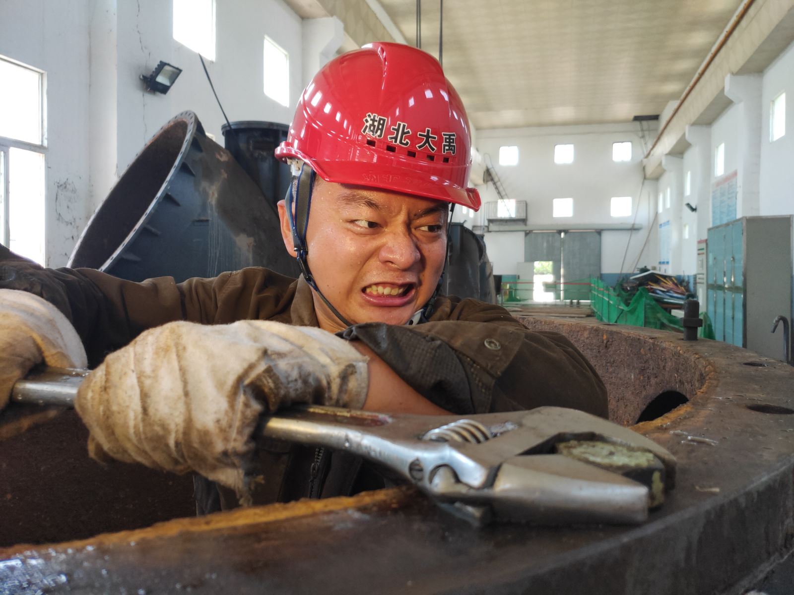 摄影作品2号——《机电工人扭螺栓》 作者:方荣