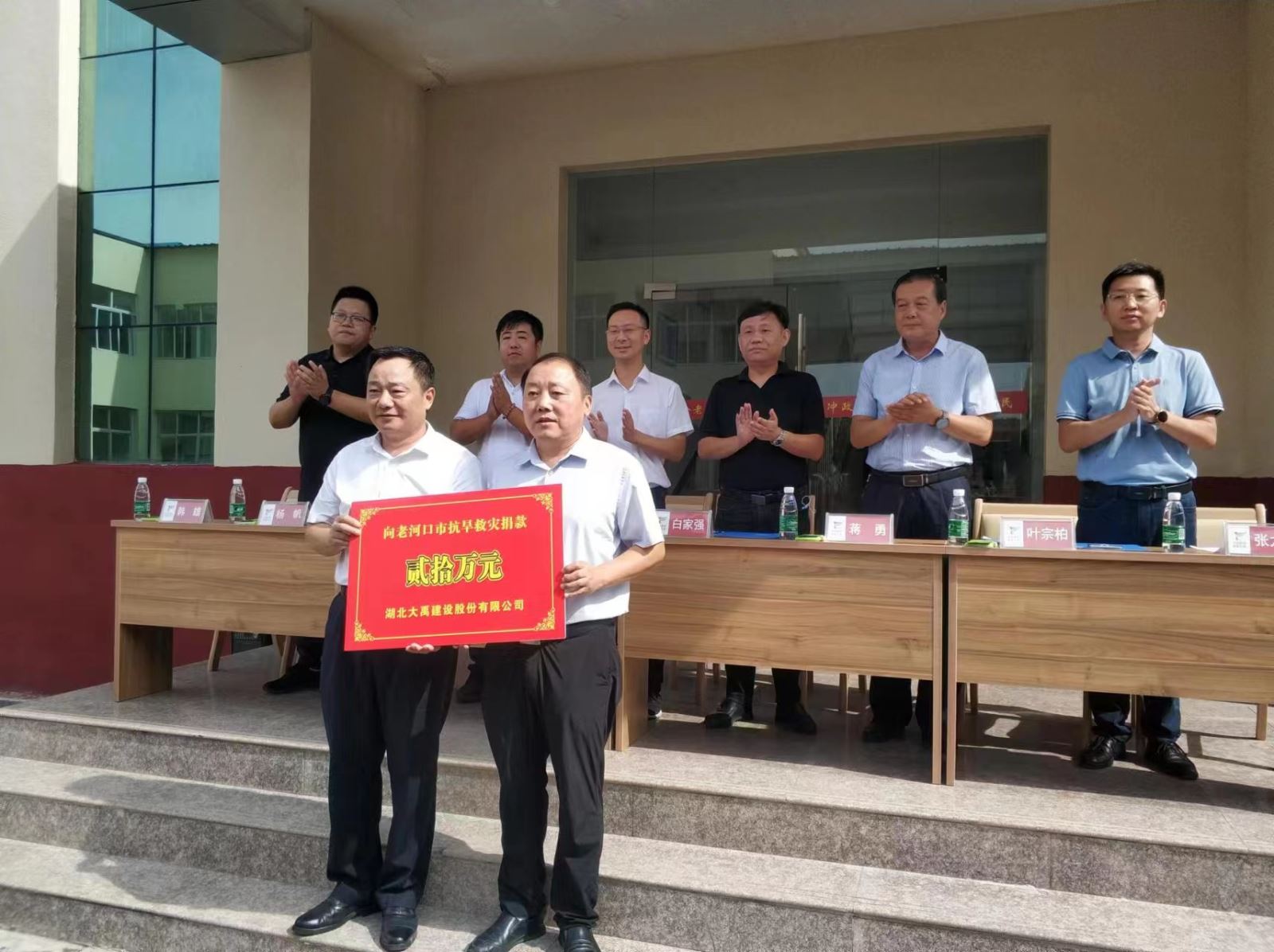 自7月入夏以来,襄阳老河口市遭遇历史上罕见持续高温,降雨显著偏少,久旱无雨的天气已对该市农业生产造成不利影响,部分地方出现农业用水短缺问题。在了解到老河口市旱情后,公司主动联系老河口市政府,决定捐款20万元,支援该市抗旱救灾工作。