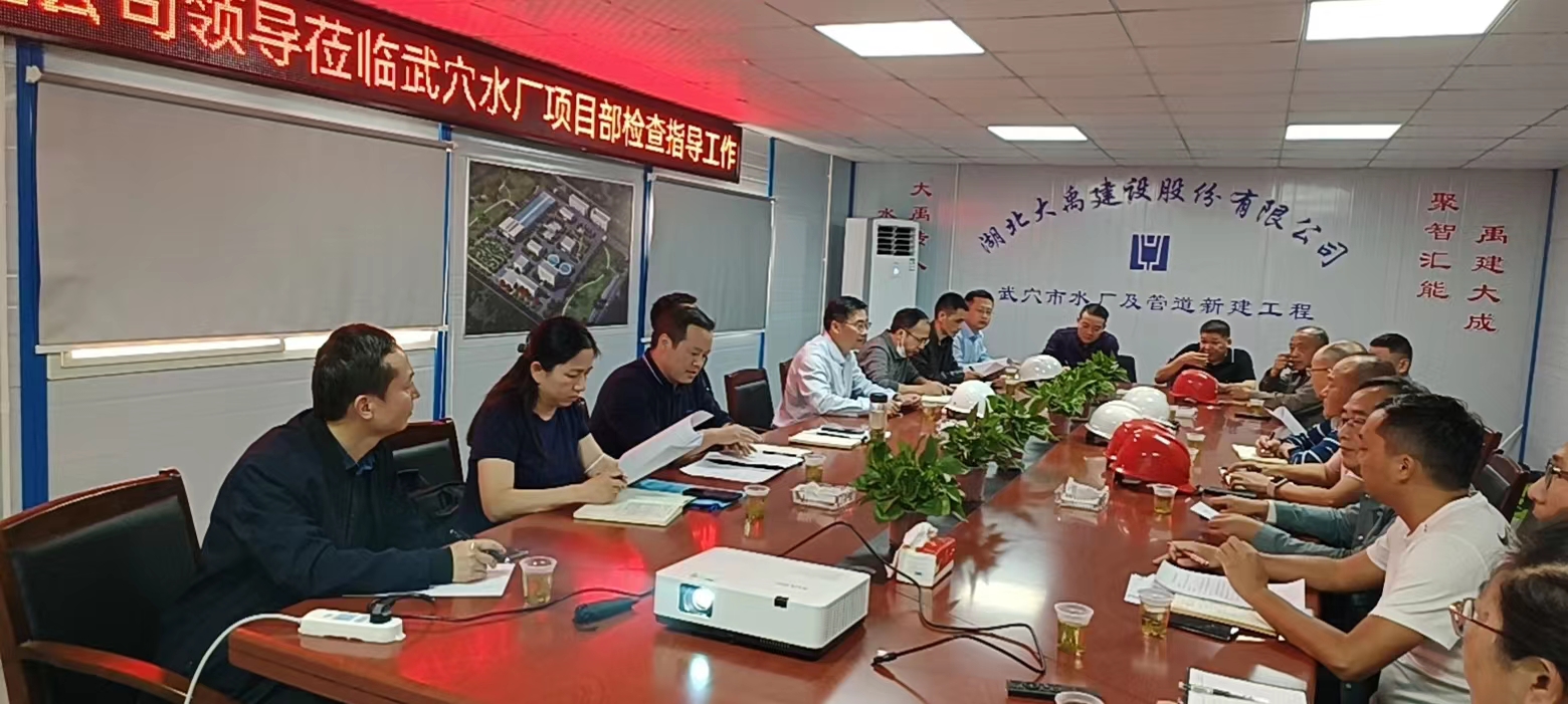 胡刚一行对工地现场、内业资料、财务资料进行了仔细查看,并召开了工作座谈会。会上,项目负责人做了工程建设情况的详细汇报,公司相关部门负责人就本部门与工程相关的工作流程作出了解释说明,并对工程管理过程中存在的不足提出了建议。会后,胡刚表示,武穴市水厂及管道新建工程是一项政府高度关注的民生工程,同时也是树立大禹形象的工程,一定要履行“实现水利工程“江汉杯”,争创水利工程“大禹奖”的质量约定,项目部要为当选“优秀项目部”做准备,项目部成员要加强学习贯彻执行公司政策,提升管理意识及水平,积极与时代挂钩,走现代化管理道路,加强与职能部门沟通协作,抓紧水利施工的黄金时间,努力达成“11月底完成中心水厂土建工程,明年6月底中心水厂通水试运行”的节点目标。同时胡刚还要求职能部门做好服务,对武穴市水厂及管道工程的检查做到常态化管理,携手发力、共同建好武穴市水厂及管道新建工程。