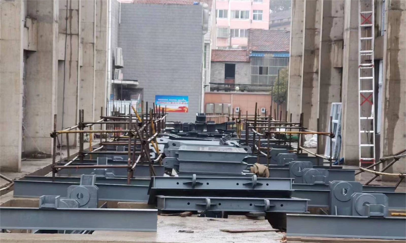 3月18日,阴雨天气。金口泵站更新改造工程首次进行闸门吊装,历时10个小时,6块检修闸门和6块检修闸门成功到达预定位置,并进行锁定,吊装取得圆满成功。