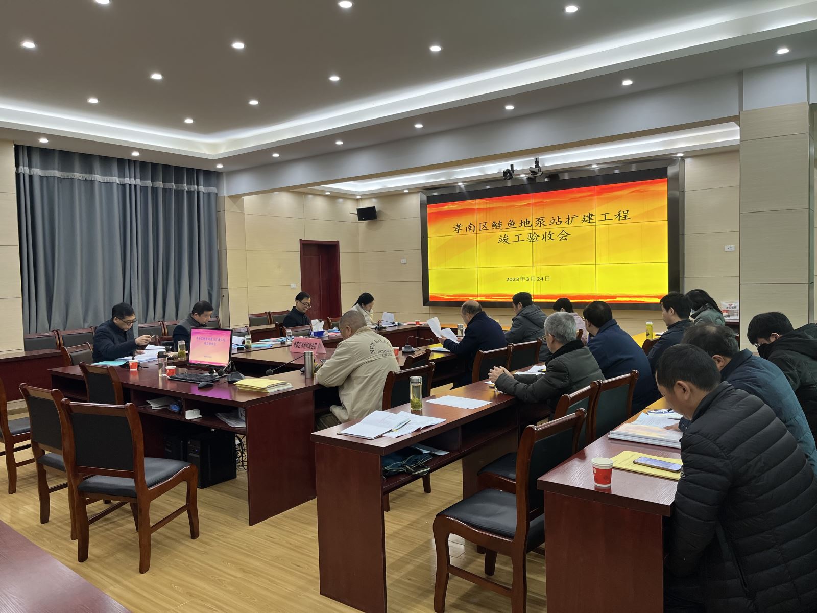 3月24日,在孝感市孝南区水利和湖泊局防汛抗旱办公室主持召开了孝南区鲢鱼地泵站扩建工程竣工验收会议。竣工验收委员会由孝感市孝南区水利和湖泊局、区水利水电工程质量监督站及工程参建各单位等代表和特邀专家组成。项目法人、设计、施工、监理等有关单位的代表参加了会议。