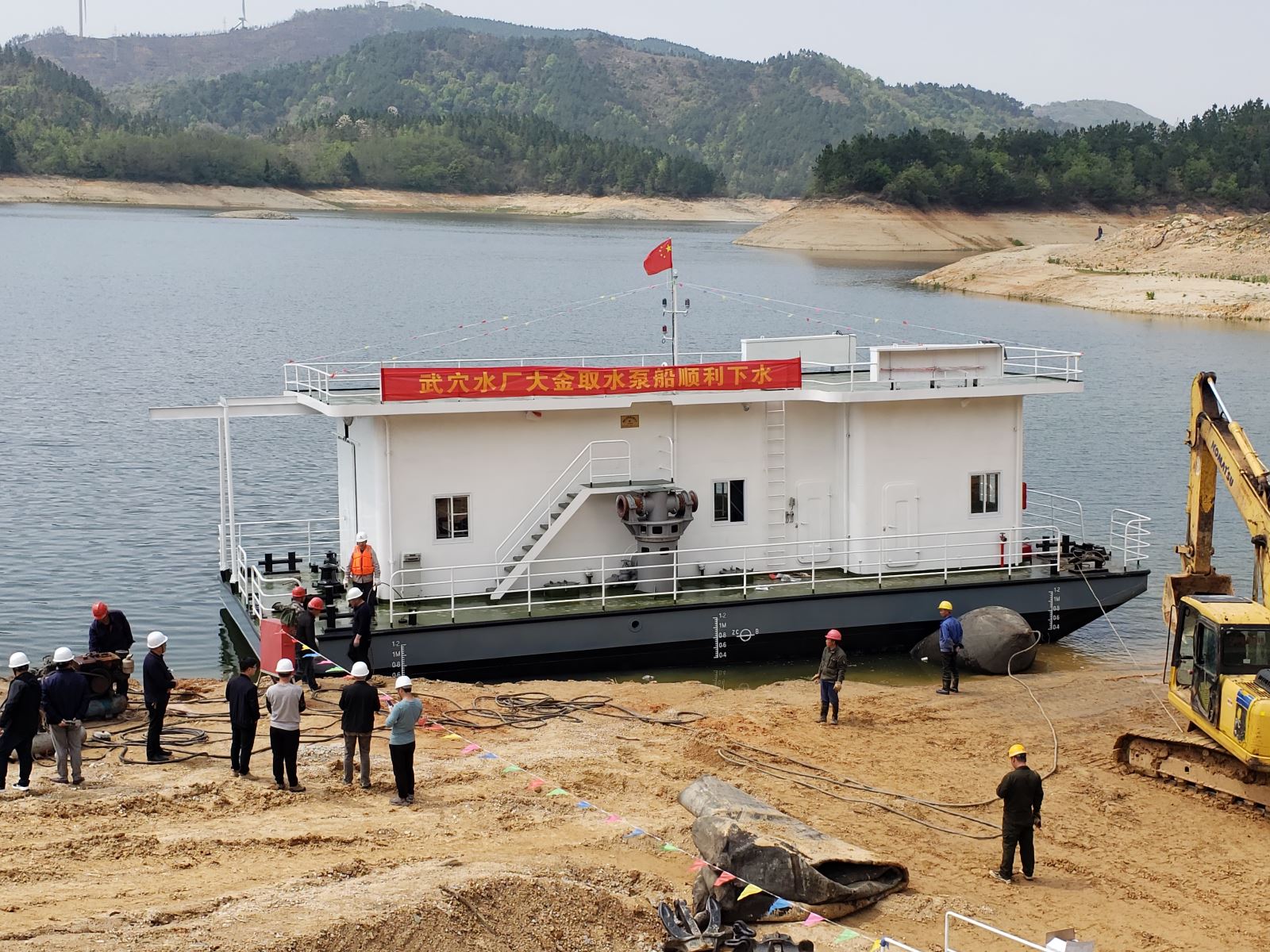 4月7日,武穴市水厂及管道新建工程大金取水泵船顺利下水,武穴市水利和湖泊局、监理单位及公司武穴水厂项目部管理人员参加了下水仪式。