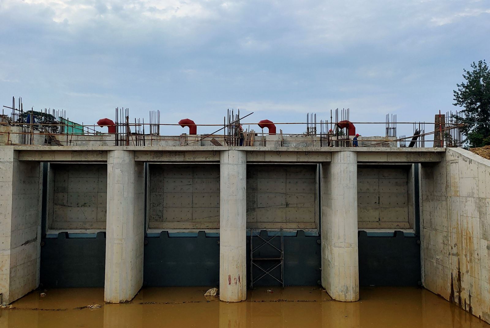 6月7日,随着第四块防洪快速门准确吊装到位,张家湖泵站金属结构所包括的7孔拦污栅、4孔安全栅、4孔检修门、4孔防洪工作门、4孔防洪快速门、3孔自排闸闸门轨道埋件安装完成,检修门前的防洪墙衬砌粉刷完成,标志着张家湖泵站扩建工程水下工程已经全部完成,进入安全防洪排涝状态。