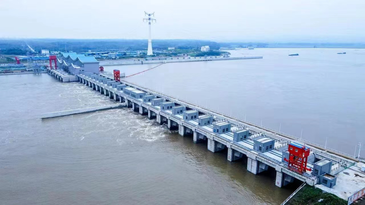 2023年9月25日,受汉江上游持续强降雨天气影响,汉江中下游防汛形势十分严峻。10月4日21时,流量13700立方米/秒的洪水在坝上水位涨到48.51米后开始回落,至10月60日8时,坝上水位45.14米,低于一期蓄水水位线,湖北碾盘山水利水电工程枢纽工程经受住了工程运行后首次汛期考验。