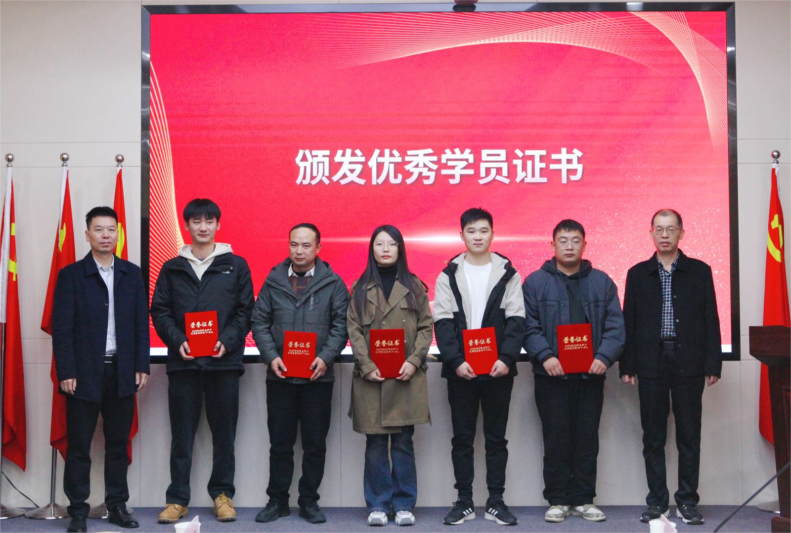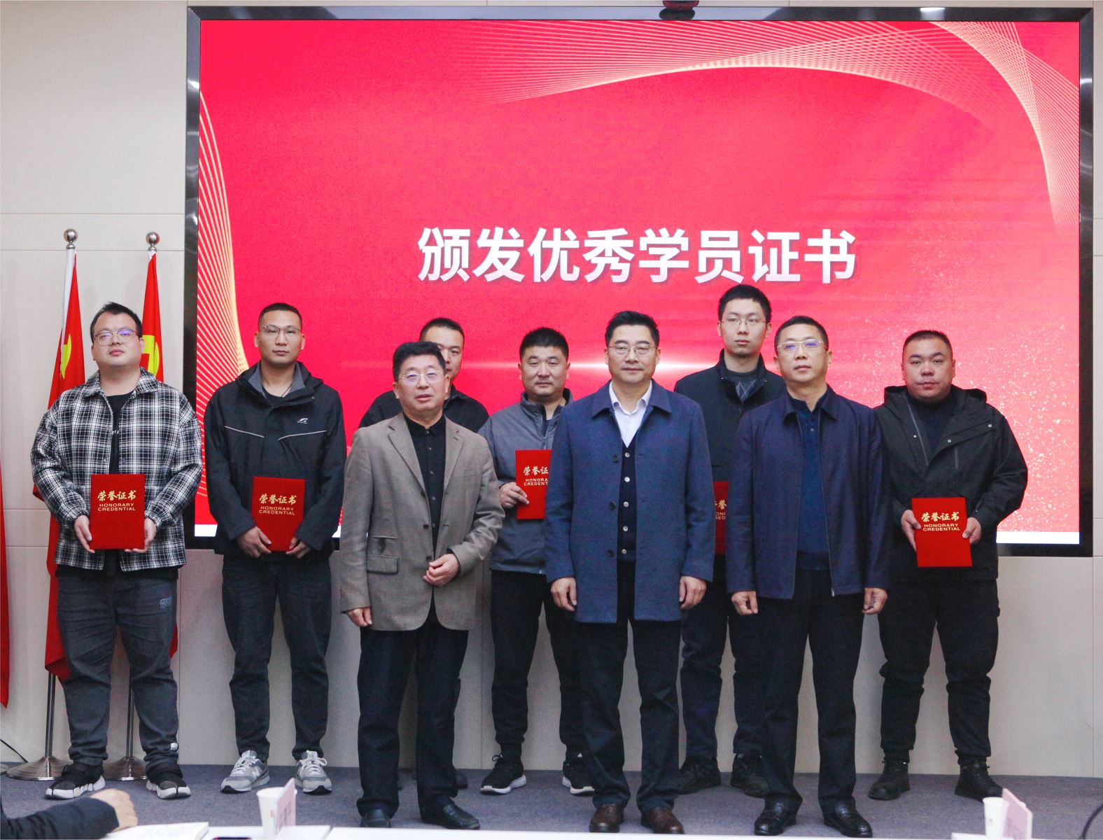 最后通过学员们的日常学习表现和结业学习心得综合选出十一位优秀学员,由参与此次会议的各位领导依次为大家颁发结业证书和优秀学员证书。