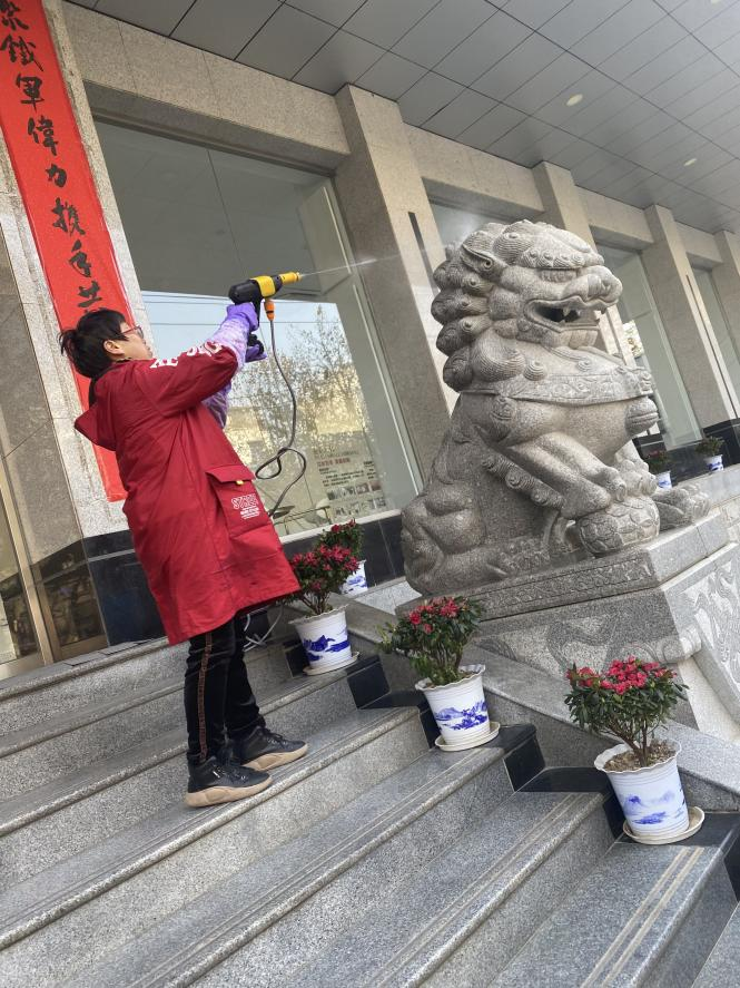天寒心不冷,情暖化冰凌。怀中揣热血,何俱刮骨风。在这寒冷的冬季,大禹公司后勤保洁人员却依旧怀揣温暖与热情,一把笤帚,一个口罩,一双手套,一块抹布,一把拖把、一套消毒桶、刷子等用具,每天迎接缕晨曦,年复一年,兢兢业业,打扫着卫生。大院内下水沟、每天的枯叶、后山掉落的树枝....楼梯间、厕所内...四个会议室、三楼顶楼平台等等,都能看到他们勤劳的身影。他们弯着腰一下又一下扫着、抹着,寒冬用刺骨的水清洗着抹布、拖把等,从不放过一处角落,每位工作人员的区域看似简单平凡,“扫”“推”“拖”“擦”“消毒”“丢垃圾”等程序一项都不能少。
