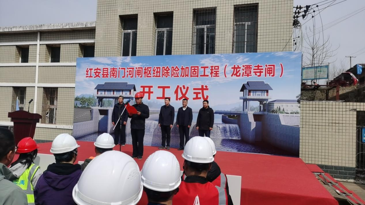 3月12日,红安县龙潭寺电站隆重举行红安县南门河闸枢纽除险加固工程施工第2标段(龙潭寺闸)开工典礼,红安县县委副书记高伟、副县长余品祥、水利局局长丁红波、县相关部门、乡镇、村代表,公司副总经理兼总工程师李长华及龙潭寺项目部主要管理人员参加开工典礼。