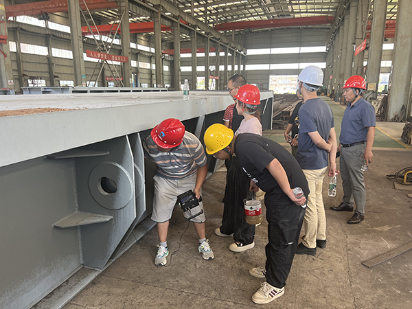 本次金属结构设备制造出厂验收范围包括4扇防洪闸工作闸门及附件的加工制造。与会代表查看了制造现场,听取了设备制造单位关于设备制造和质量管理情况的汇报,查阅了相关资料。第三方检测单位于2024年4月16日对闸门外观、焊缝质量进行检测,2024年4月20日对闸门防腐质量进行了现场检测,质量合格。参会人员认为公司生产的产品外形尺寸、外观及焊缝质量均满足设计及规范要求,资料齐全,验收合格,同意出厂。