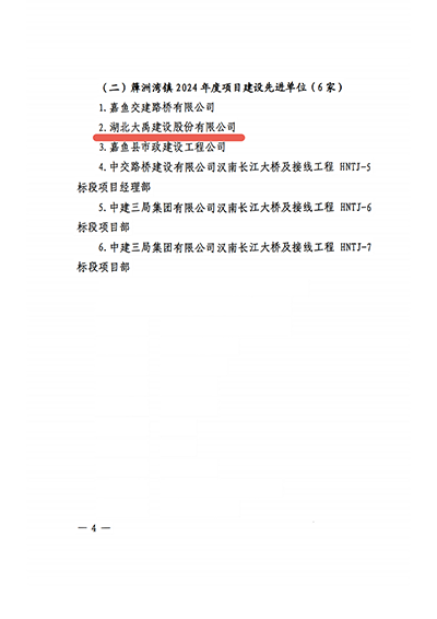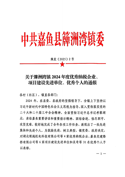 2月13日,在嘉鱼县簰洲湾镇召开了2024年度项目建设先进单位表彰大会,在30多家施工单位激烈竞争下,公司获评先进单位。