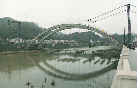 江西德兴大桥吊装施工现场